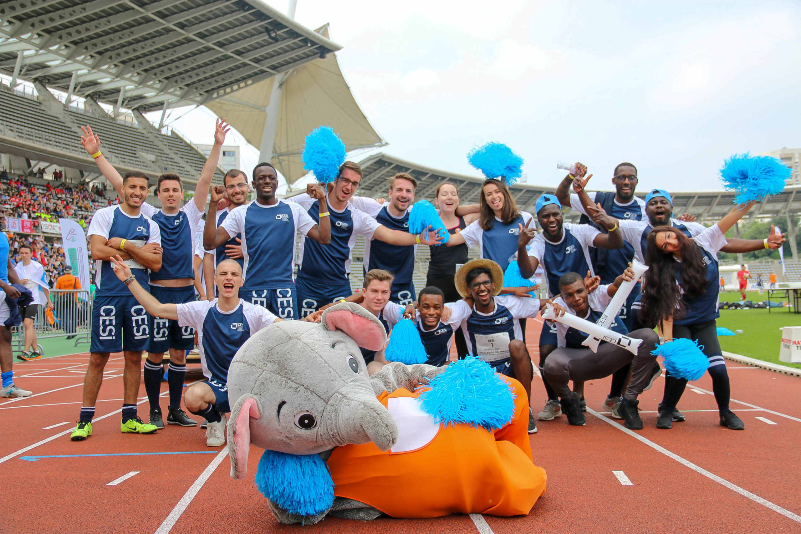 Le challenge Le CDMGE c’est : Une compétition sportive (épreuves d’athlétisme, tournoi de football, basket à fauteuil roulant…) Un grand forum métiers rassemblant des entreprises leaders dans leur secteur (Atos, Disneyland, EDF, Generali, Lagardère, Nestlé, Renault, SNCF) Des actions de sensibilisation au handicap (pour aider les étudiants en situation de handicap à rencontrer les employeurs) Une ambiance fun et festive (fanfare, sprint de mascottes, chorégraphies…) Découvrez le best of 2018 ! https://youtu.be/oANAEQ0Qbc8 Les équipes CESI Le CESI avait trois équipes en lice dans la catégorie « Compétition sportive » : athlétisme, foot masculin, foot féminin, et basket en fauteuil. Découvrez les résultats et classements de la 10ème édition Les supporters n’étaient pas en